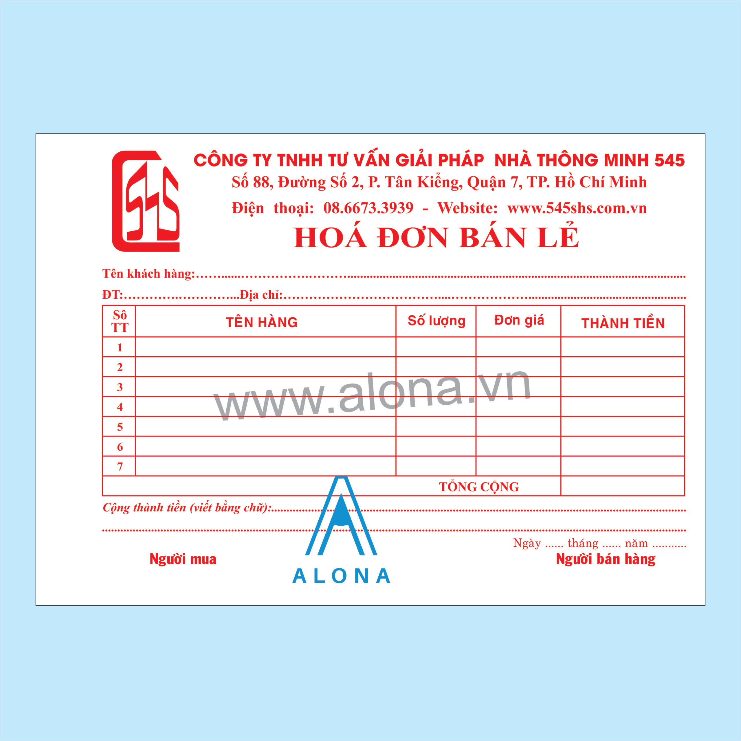 Here is a retail invoice designed for 545 Company by Viet Print.